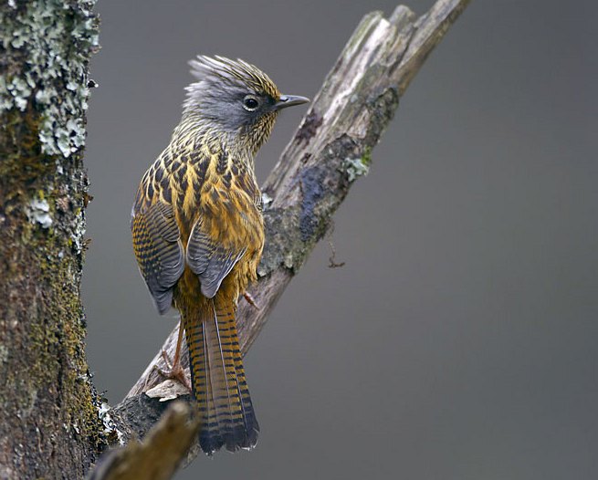 ,下体皮黄而具黑色纵纹。雌鸟体型略大:上体全褐,比雄鸟少赤褐色而多粗横