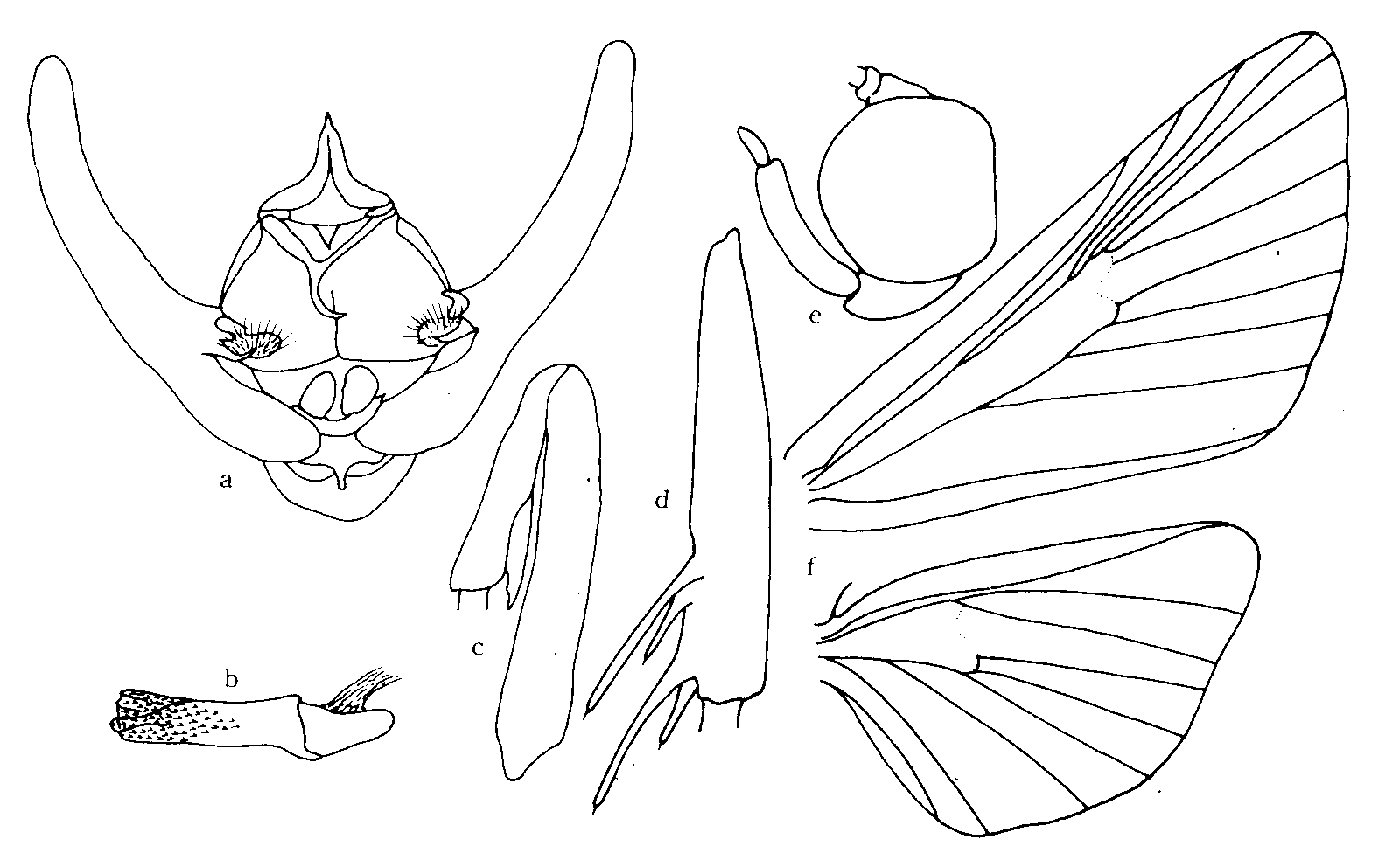 雄性 体小型。头短于前胸背板。头顶三角形,顶锐角形,眼间距的宽度大于颜面隆起在触角间宽度的2倍。头部背面具明显的中隆线。缺头侧窝。颜面略倾斜,颜面隆起明显,宽平,侧缘在中眼处略收缩或不收缩,向唇基渐宽。复眼卵形,复眼的垂直直径等于或略大于横径,与眼下沟等长。...