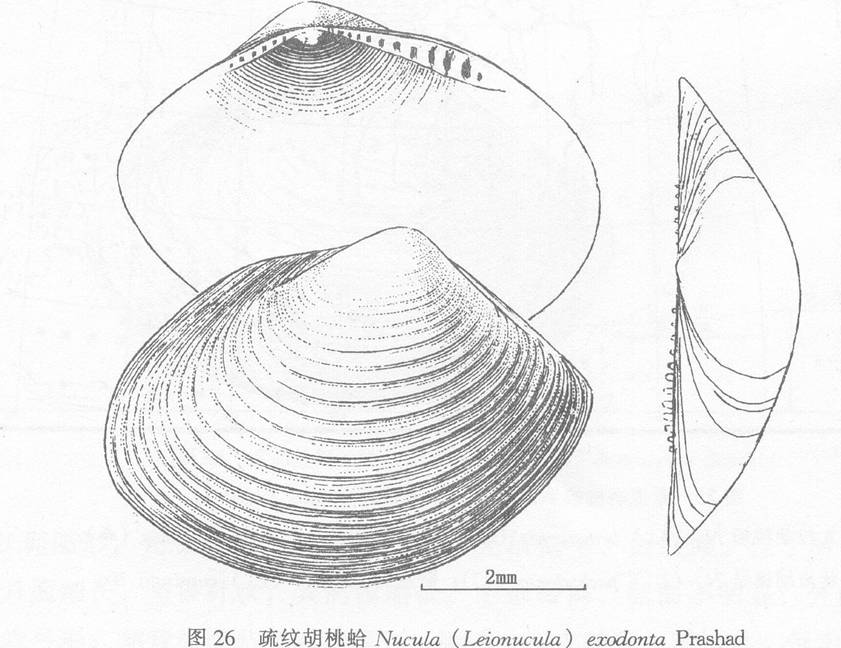 壳型小,壳质坚厚;壳顶突出,后倾,位于背部后端1/3;小月面不明显,楯面较长,略呈披针状,其表面仅有细的生长线;壳的前缘圆,后端截形,前背缘凸,腹缘