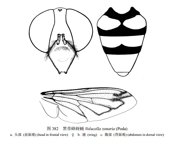 褐色;翅色较暗;上唇基部两侧的圆斑黑色,非褐色。体毛以白色为主,非以浅黄色为主;头部的眼侧、额、颊均被白毛;颅顶被少量黑色长毛;胸侧、并胸腹节及腹部第1节背板被白色长毛;...