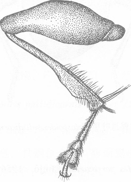 体黄褐色;触角棕色,基部和端末淡棕黄色,腿节端部、胫节及跗节基部黑褐。