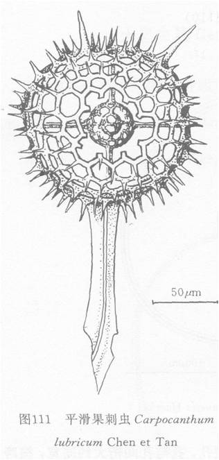 皮壳圆球形,壁薄,壳表光滑。壳孔六角形至类圆形。大小相近,亚规则排列。孔间桁较细,一般为孔径的1/5-1/6,横跨赤道占8-10孔。外髓壳球形,具六角形开孔;内髓壳