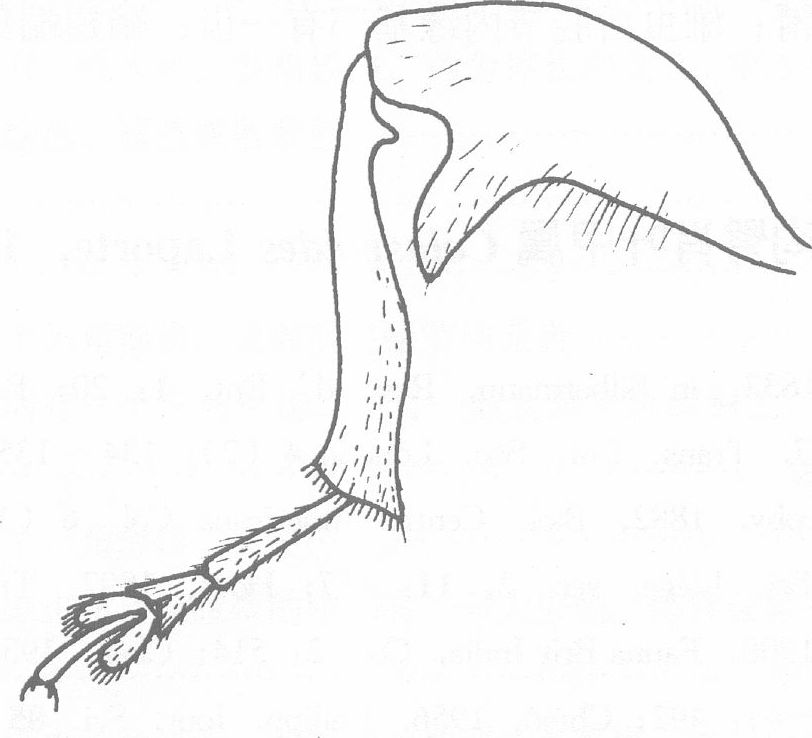 头部刻点粗密,唇基前缘呈弧形凹切。触角约达体长之半,第1节粗,椭圆形,第2节稍弓弯,短于第1节,第...