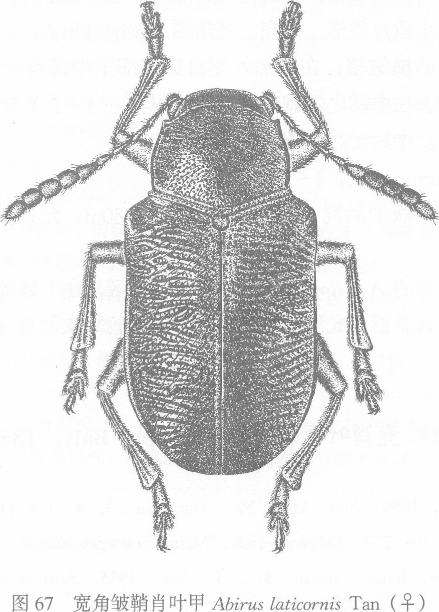 头部刻点深而紧密,多少呈皱状,头顶中央有纵沟;额唇基宽阔,有一条窄的横凹与后面分开。触角粗壮,各节近似念珠状,...