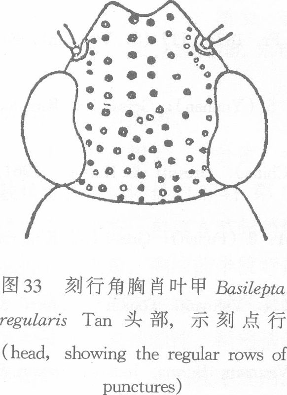 头光亮,刻点深、稀疏,排列成规则的纵行(图33);额唇基前端两侧各有一条隆脊,前...