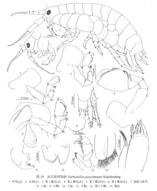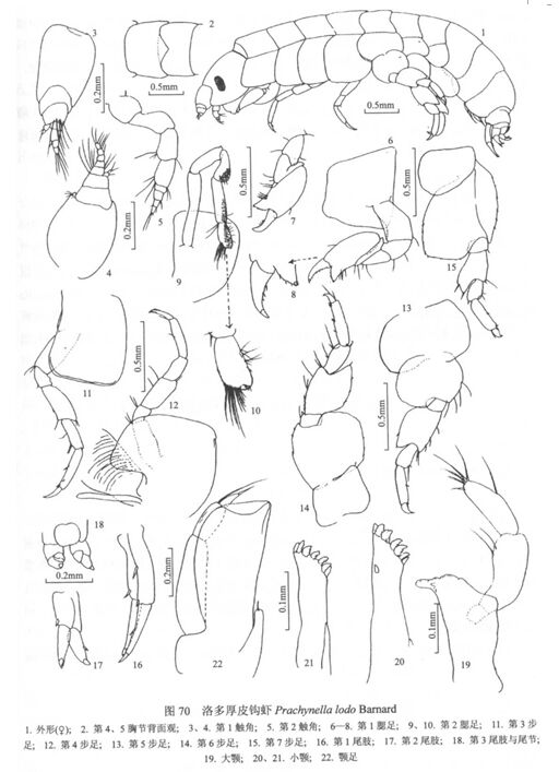 第1触角短于第2触角,柄短于鞭长,第1柄节最长,鞭12—16节,无副鞭。第2触角较长...