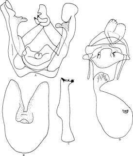 ♂♀触角线形。额凸出,下半部灰绿色,上半部杂白色。下唇须褐色,第2、第3节鳞片粗糙;♂约1/4、♀约1/2伸出额外。头顶、胸部背面及腹部背面前3节灰绿色,其中腹部第2、第3节中部有白斑;腹部背面其他各节带褐色。♂后足胫节膨大,有毛束,2对距,有短端突。♂第3腹...