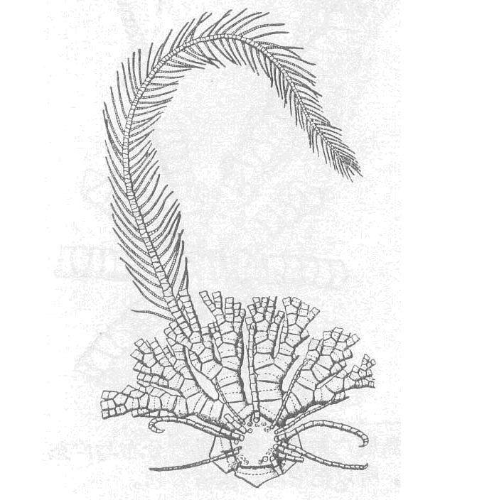 中背板很厚,成圆盘状,或稍带五角形,边缘倾斜,外缘盖在辐板上,中间隔有一大而深的裂孔。卷枝窝在中背板边缘排成规则的1-2圈。卷枝XXV个,由14-16节构成,长约15毫米;除第1节较短外,其余的都是长大于宽。峙棘短小。端爪细,稍弯曲。辐板很短,宽为长的5-6倍...