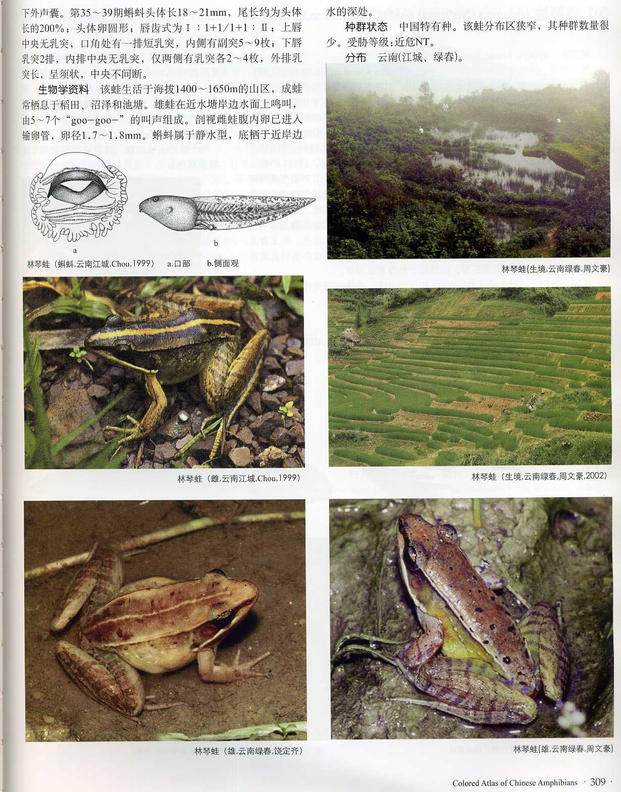 形态 依据中国台湾(20雄、14雌及蝌蚪)标本。