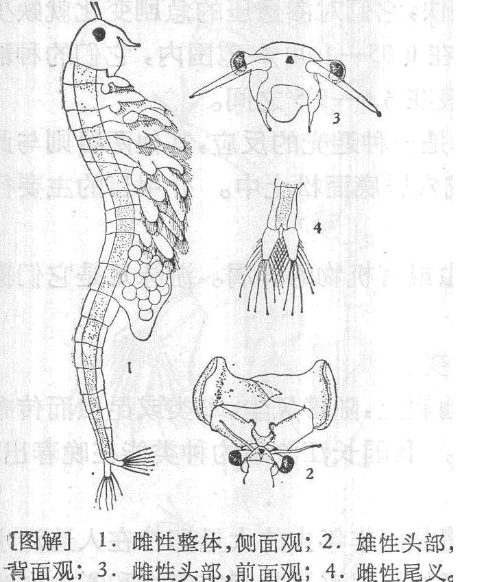 身体细长,头胸部的长度与腹部约相等或稍短,腹部近末端略膨胀。雄性第一触角细长,第二触角基节的内缘近基部处具一圆形突起,第二节的末部趋尖,但因地区而有变异。大颚粗壮,咀嚼缘具细锯齿,第2小颚具一簇刚毛。雄性交接器基节粗壮,内面有2圆形突起,第2节为扁平的三角形,...