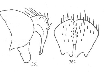 形态 ♂:体长7.0mm。眼密生短纤毛;毛长仅及前单眼宽;上中部的小眼面略扩大;额稍狭于单眼宽;侧额、间额及侧颜均棕色;触角暗褐色,第三节长为宽的4倍;芒羽状,最长芒毛等于触角宽;下眶鬃4对长大,向上方去呈小毛状;间额在上2/3消失;侧颜略狭于触角宽的1/2...