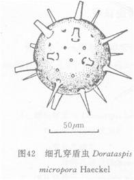 ,近心端为圆柱形,远心端呈短剑形。骨针中点上生出五或六角形的盾板,并相互连成一个平滑或类椭圆形的铠壳。盾板相连处有缝,或由于愈合而消失不见(本标本属后者)。每块盾板,有2个肾形或椭圆形的围针孔,5-6个圆而小的缝间孔(每缝一个)。骨针基部互相紧密结合...