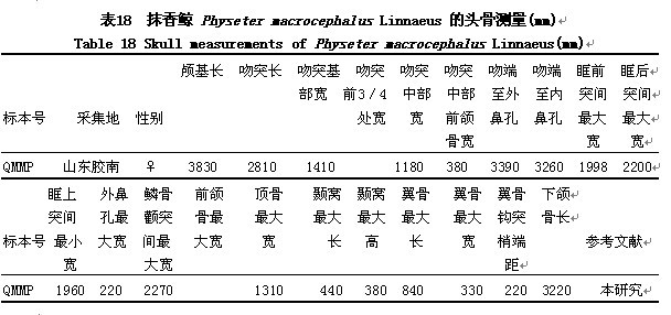 形态 雄性最大体长18.3 m,雌性12.5 m。雄性最大体重57 t,雌性24 t。身体略侧扁。头巨大,占体全长的1/4~1/3,从侧面看似方形;背侧的膨大部分为充满