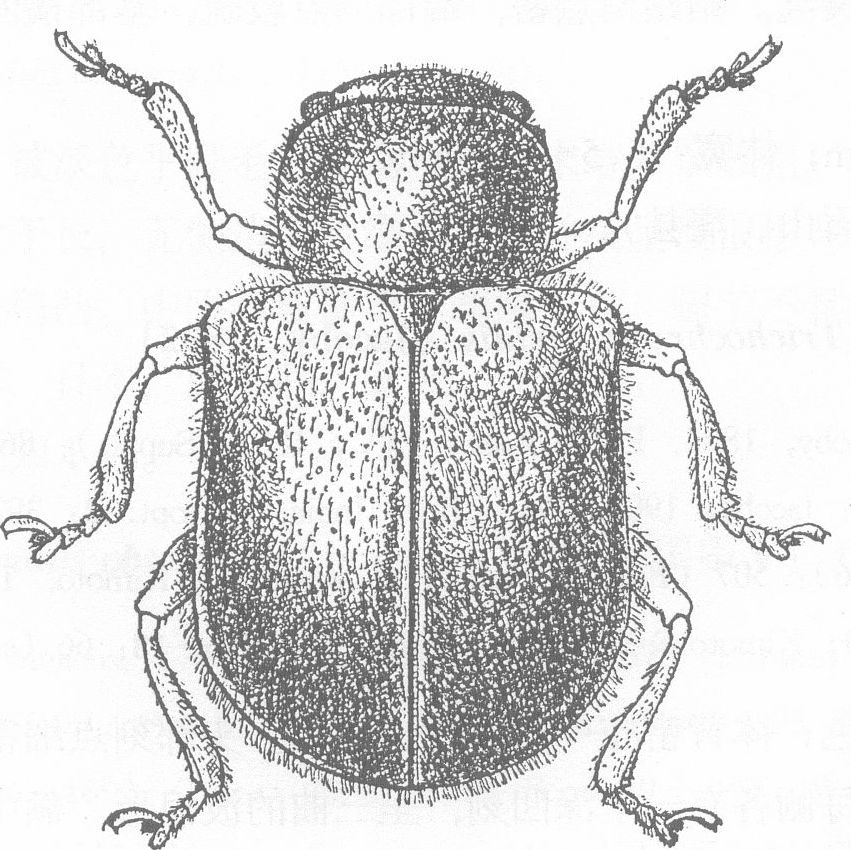 体棕红或黄褐色,中后胸腹面和腹部黑亮,体背被较密的淡灰黄色卧毛。头