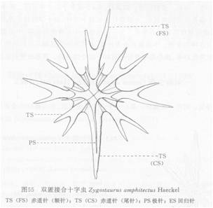 均带分叉的角。回归针较短,亦均带一分叉的角。极针瘦小,有针状分枝。各骨针基部具十字叶,并且相连结合成为一叶状