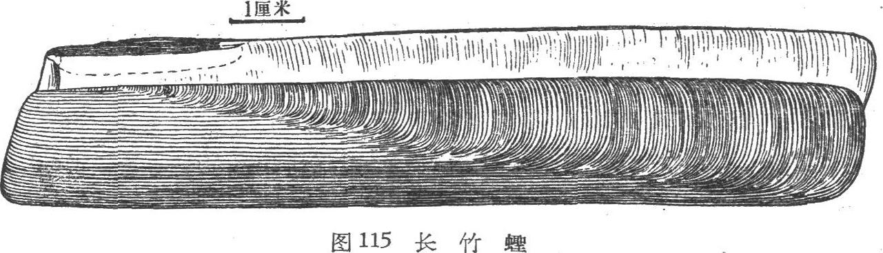 貝壳极延长,壳貭薄两壳相等,壳长約为壳高的6-7倍。背腹緣几乎平行,腹缘中部微凹,壳之前端呈截形,后端圓,前端較后端略粗大。外韌带黄褐色。貝壳表面光滑,被有黄褐色外皮,在成长的老个体壳頂的外皮常脫落而呈白色。生长綫明显,呈弧形,后端有时形成褶襞。