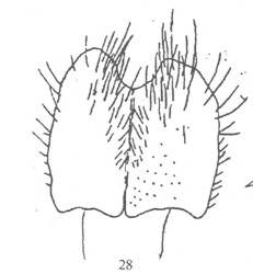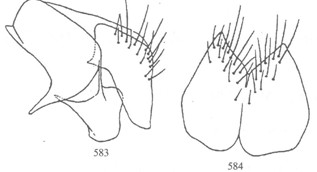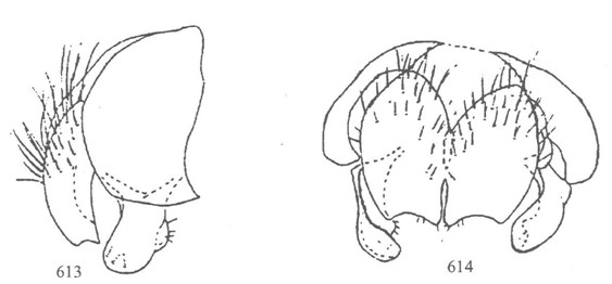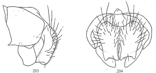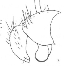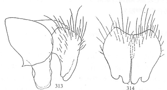 形态 ♂:体长5—7mm。眼具稍疏长纤毛,额为前单眼宽1.3倍或相等,间额在最狭处消失或如线,下眶鬃8,侧颜为触角第3节宽0.7倍;触角黑,第3节长为宽2.5倍,芒具毳毛;口前缘不突出;颊毛及下后头毛黑,颊高为眼高0.27倍;下颚须宽,其宽度约等于触角第三节...