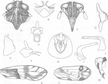 间淡黄色,侧区黄褐色,前、中足基节除基端外为黑褐色。前翅淡黄褐色,透明,端区中偏后缘具烟污色条带,爪片后缘淡黄色。腹背除侧区和基部节间膜外为黑褐色;雄生殖节污黄褐色,阳基侧突、阳茎和臀刺突褐色。