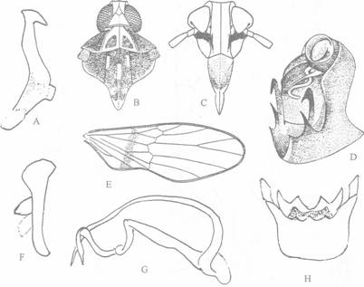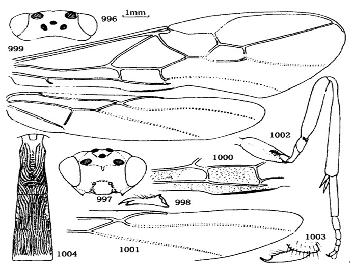 “♀:体长1.9—2.3mm。头背观横形,宽为长的1.8—1.9倍,复眼长为上颊的2.0倍,上颊稍收窄。单眼圆,较大,与另一个相近,POL短于OD,OOL长为POL的4倍。侧观复眼高为...