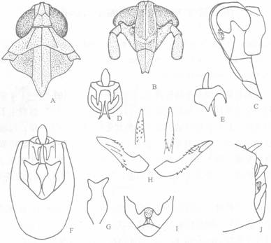 头部刻点十分细密,复眼之间有一条短纵凹纹;额唇基前方稍凹下,刻点较大而疏,两侧各有一条纵