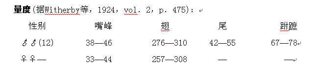 (冬羽) 头顶和枕部暗褐;颏、喉及前颈灰白,上体大都黑褐,羽缘灰色。