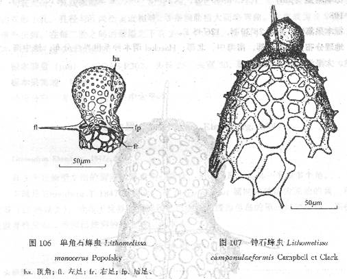 式交错排列。缝合线稍凹。壳壁由单层纵向或斜向长海绵骨针紧凑胶结而成。房室基部侧缘常有一
