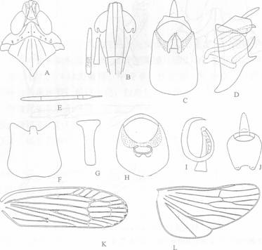 头:触角35节,第3节长是第4节的1.3倍,第3、4及倒数第2节长分别为其宽的2.6、2.0和2.0倍;触角与体等长。下颚须长度为头高的1.2倍。背观复眼长为上颊长度的3.2倍;上颊在复眼后方直线收窄。...