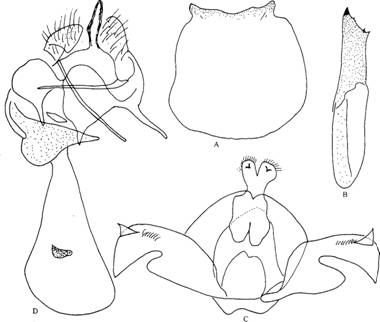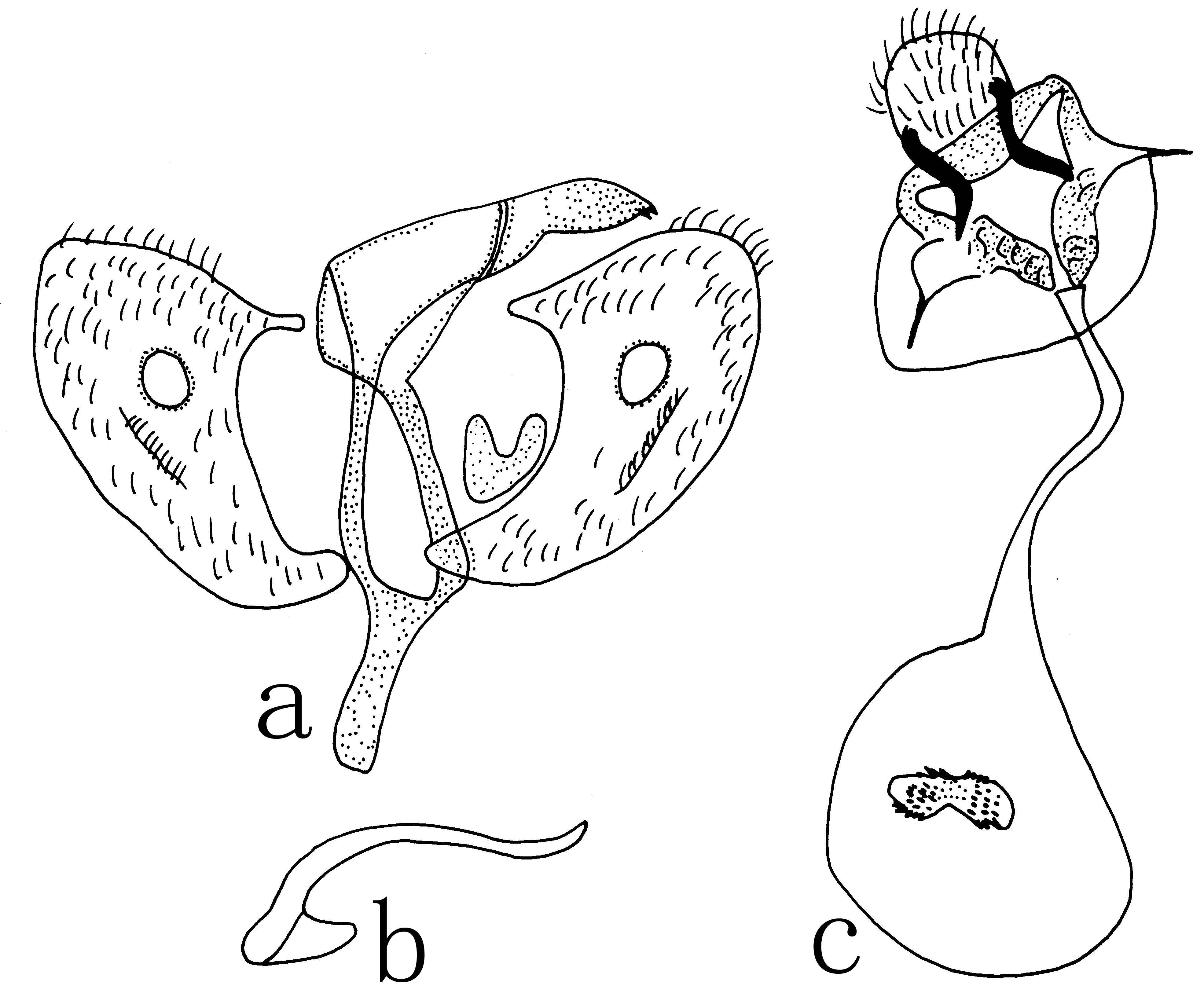 蚊(560页)十分近似,但雄蚊抱肢腹内区无末端细尖的粗短刚毛,幼虫腹毛11-Ⅱ棘毛状。