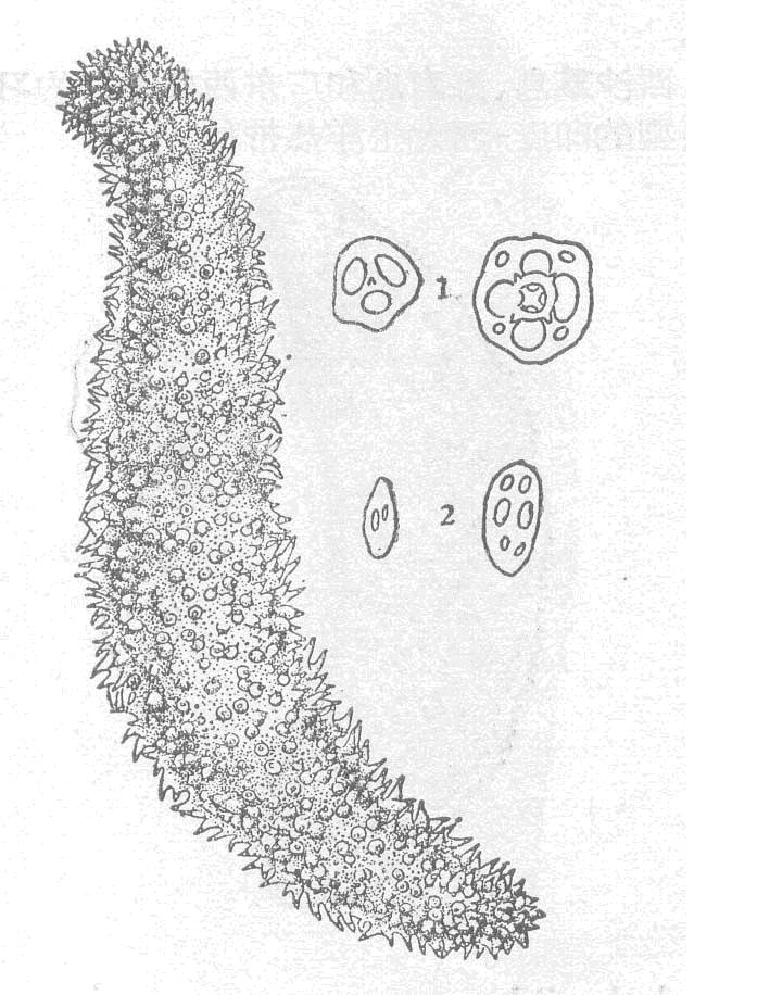 皮肤内的骨片主要为扣状体和桌形体:扣状体薄而扁,形状变化很大,各具小孔1-3对,但一般的只具一对裂孔...
