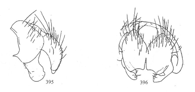 形态 ♂:体长8.5mm。眼具密的中等长度纤毛;额宽稍大于后单眼外缘间距;侧额与间额等宽;下眶鬃14,列向上达于单眼三角处。侧颜宽为触角横径的1.5倍;口上片不突出;下后头具