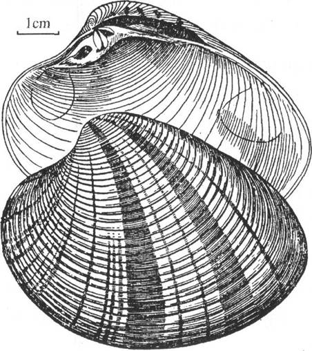 形态贝壳较大,卵圆形,壳质坚厚。壳顶前方中凹、后背缘斜。贝壳前端圆、微向上翘起,后端略尖、腹缘圆。壳表面浅黄色,披有一层薄的黄褐色漆状壳皮。同心生长轮变成粗而宽的肋,肋面平、排列较紧密,肋间沟窄而深。在贝壳中部由壳顶部向腹缘有两条宽的放射状色带,周围有许多排列...