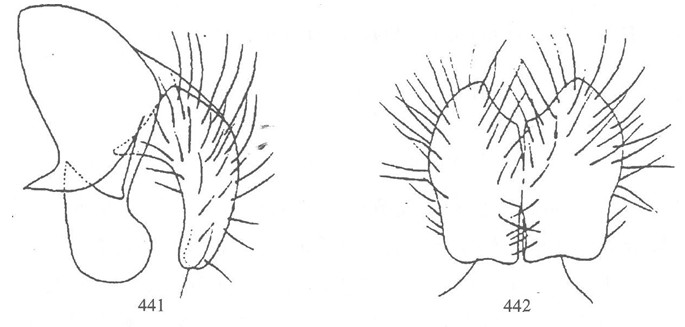形态 ♂:体长6.5—7.5mm。眼密生长纤毛;额宽大于后单眼外缘间距;间额黑,约等于一侧额宽的3倍;下眶鬃10对,无上眶鬃;侧额和侧颜具浅灰色粉被;侧颜稍宽于触角第三节宽;触角黑色,第三节长为宽的2.5倍强;芒毳毛状,最长芒毛约等于芒基粗;颊高约为眼高的1...