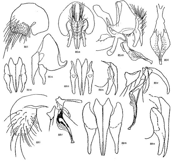 形态 ♂:体长约7.0mm。眼疏生短纤毛;中部小眼面扩大,稍大于前单眼宽;问额中段如线;下眶鬃6对,最上方短小,无上眶鬃;触角黑,第二节末端黄棕色,第三节长为宽的3倍强;芒羽状,最长芒毛稍短于触角第三节宽;侧颜狭,中部宽度不及触角第三节宽的1/2;颊高为眼高...