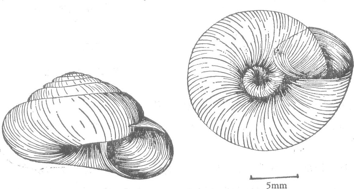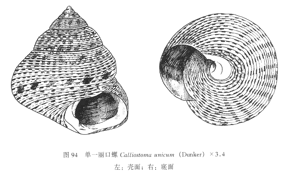 贝壳中等大小,壳质稍厚,坚实,半透明,呈圆锥形。壳高12.5毫米,宽18毫米。有6—6.5个