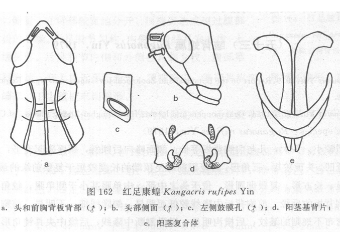 雄性 颜面隆起由上而下渐宽大,中眼之下略低凹。头顶端部近乎直角形。头侧窝长约为宽的3.5倍(图162)。触角细长,明显超出前胸背板的后缘,中段一节长为宽的2.5倍。复眼纵径为横径的1.4—1.6倍,并为眼下沟长的1.5—1.7倍。前胸背板后缘中央不具凹口,侧...