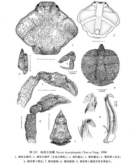 深64—100m,底质泥质砂、砂质泥或碎壳,1959.02.01—12.08;18♂、12♀,东海(29°30′—26°30′N,127°00′—124°30′E),