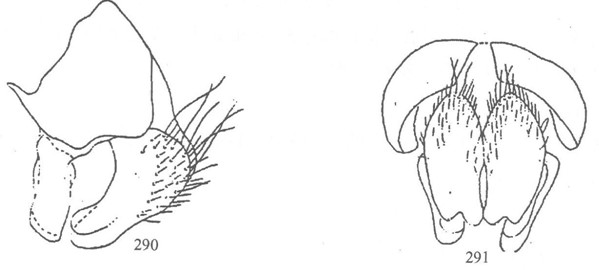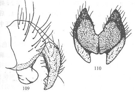 形态 ♂:体长约7.5mm;眼密生长纤毛,上方小眼面稍增大;额最狭处略大于前单眼宽;侧额、侧颜和颊具灰色粉被;下眶鬃仅下方4对长大,上半部呈短毛状;触角黑,第三节长约为宽的3倍强;芒长羽状,最长芒毛略等于触角第三节宽;侧颜狭,中部宽度仅为触角第三节宽的1/2...