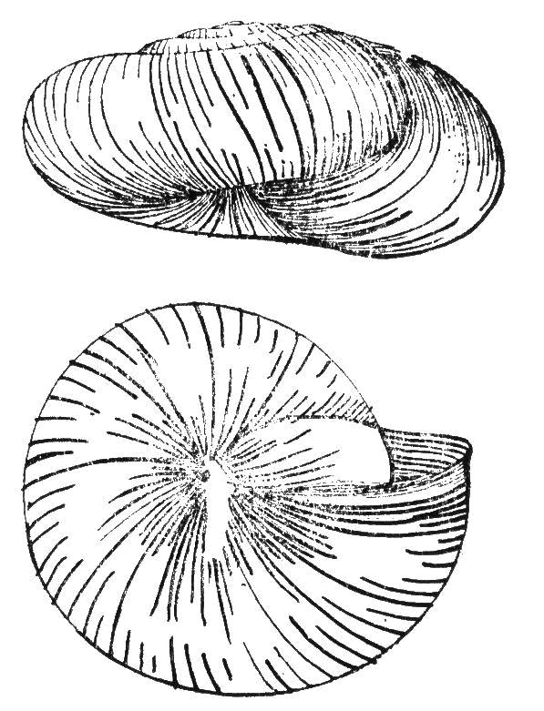 贝壳中等大小,壳质薄,易碎,半透明,呈扁圆锥形。壳高9.5毫米,宽19毫米。有5.5个螺层,顶部几个螺层增长缓慢、略膨胀,螺旋部低矮,呈圆锥形。体螺层增长迅速,膨大,上部平坦、下部突出。壳顶钝,缝合线深。壳面上部为角黄色,下部为黄白色,并具有稠密而成斜行排列的...