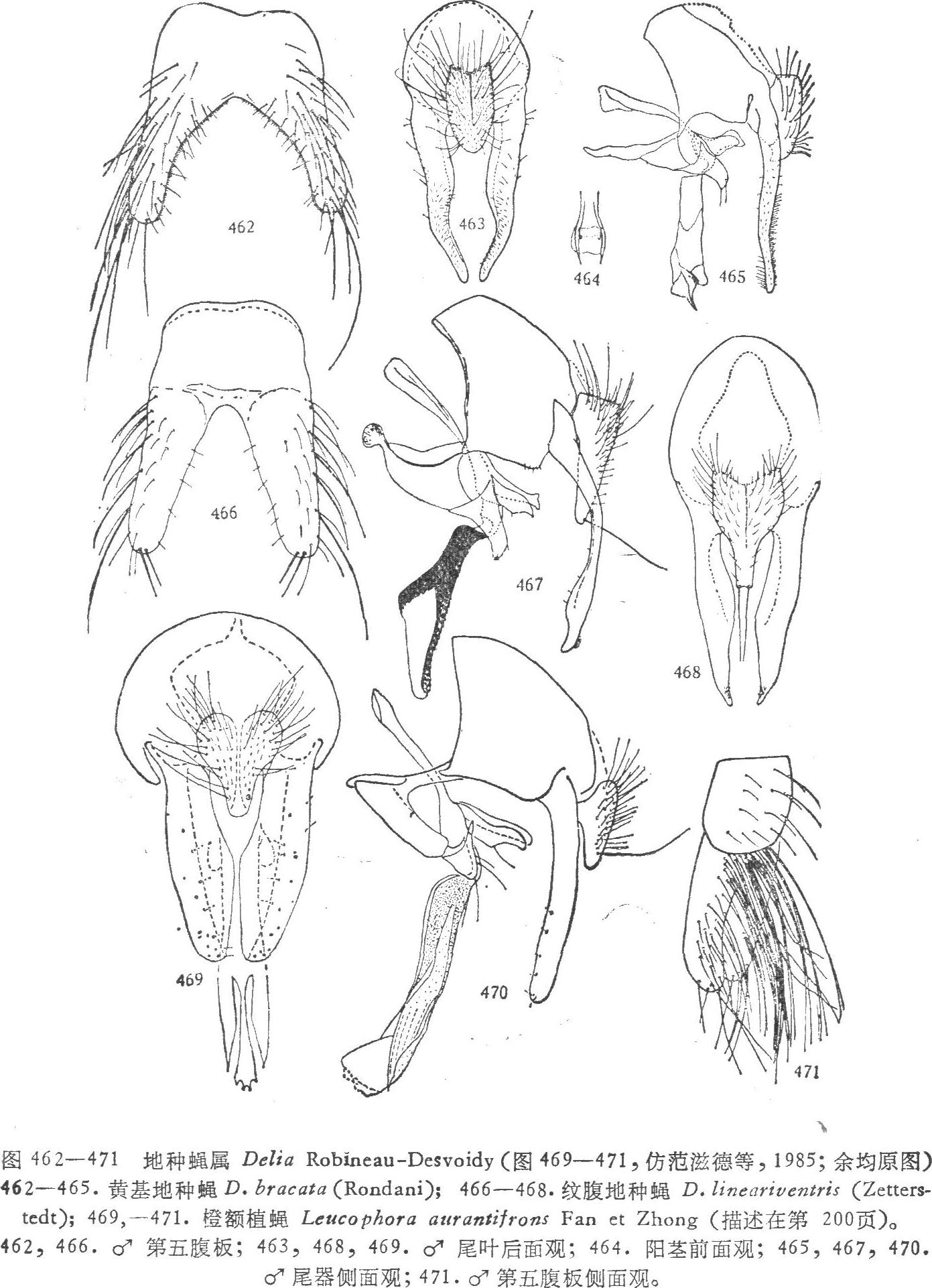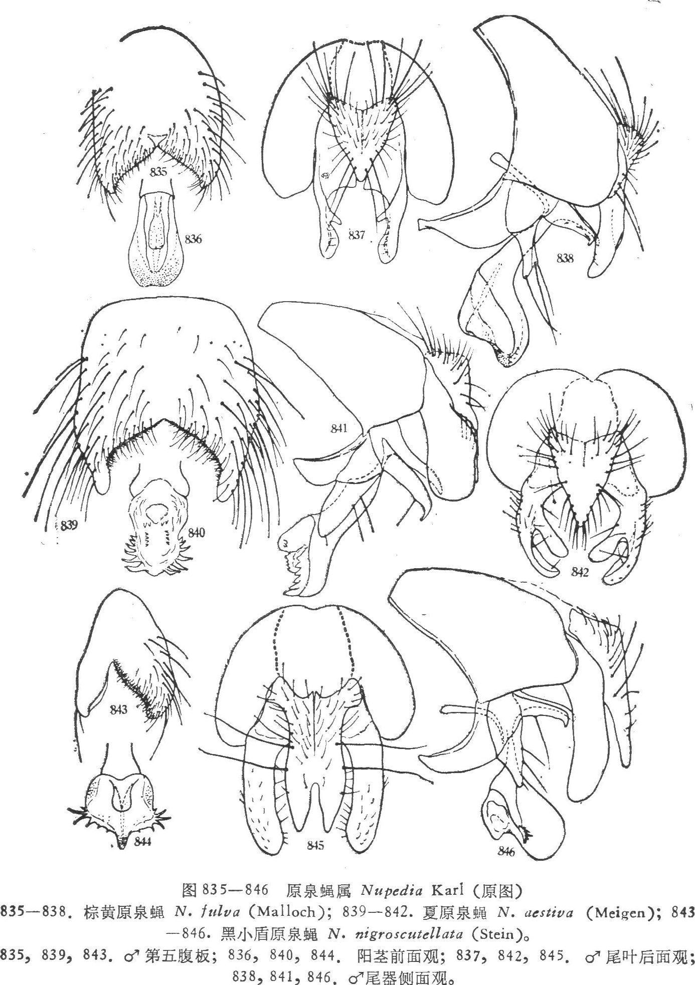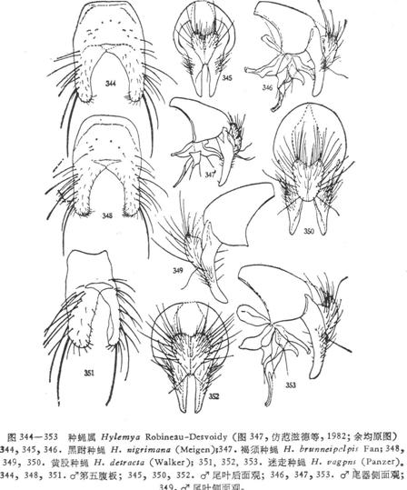 形态特征 ♂、♀ 体长4.5—5.5毫米。♂眼无毛,额合生,仅为前单眼的宽,间额棕色,上眶鬃、问额鬃均缺,下眶鬃3,侧颜及头前面粉被淡黄,侧颜宽约为触角第三节宽的,颊高与触角第三节等宽,后头背区无毛,新月片及触角全黄,触角第三节约为第二节的3倍弱,芒...