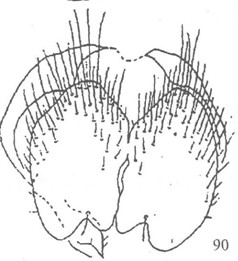 形态 ♂:体长7.5—8.0mm。眼密生褐色长纤毛,毛长为前单眼宽的3倍;额宽为前单眼宽的1.5倍,略狭于后单眼外缘间距;间额如线;下眶鬃10—14对,最上方4—7对短小,无上眶鬃;侧颜宽与触角第三节宽相等;触角黑,第三节长为宽的3倍;芒长羽状,最长芒毛为触...