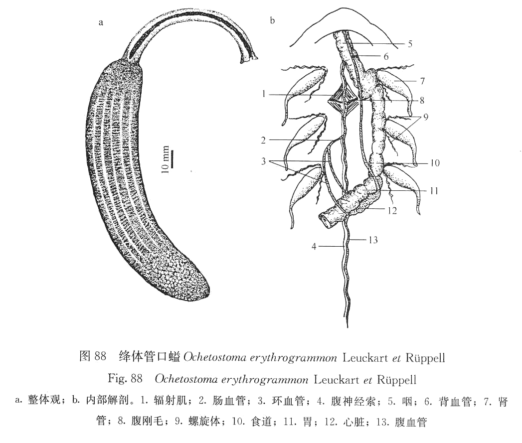 浸制标本)。生活时体紫红色,身体中部体壁较薄,半透明,内部器官隐约可见,两端体壁增厚,不透明。体表遍布皮肤乳突,体中部者小而分散,两端者...