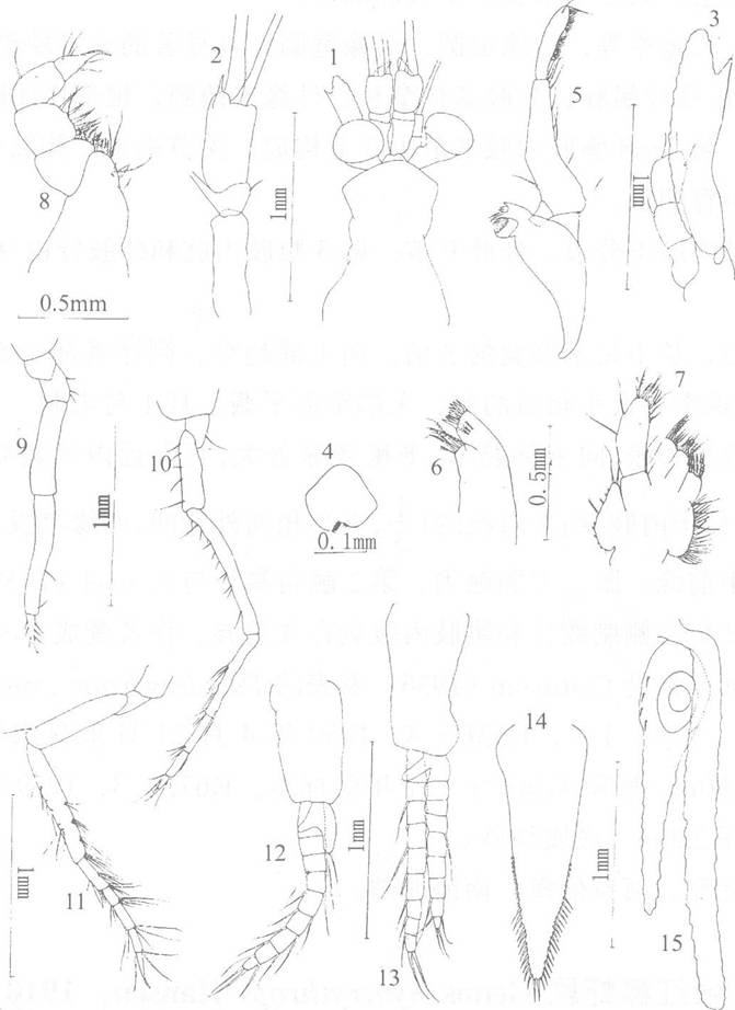 雌体长6.3—7.0毫米。头
