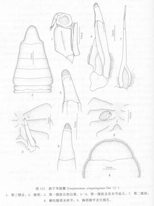观察标本:2♂♂(1幼)3♀♀(1幼),湖南新宁县,1977,10;1♂1♀,湖南武冈县