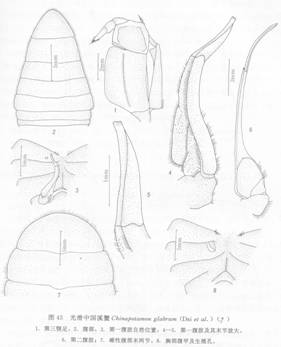 形态描述:头胸甲稍隆,表面具麻凹点,前半部具细皱襞及颗粒。颈沟明显,其中部具凹陷,胃、心区之间的H形沟略深。额后叶较隆,...