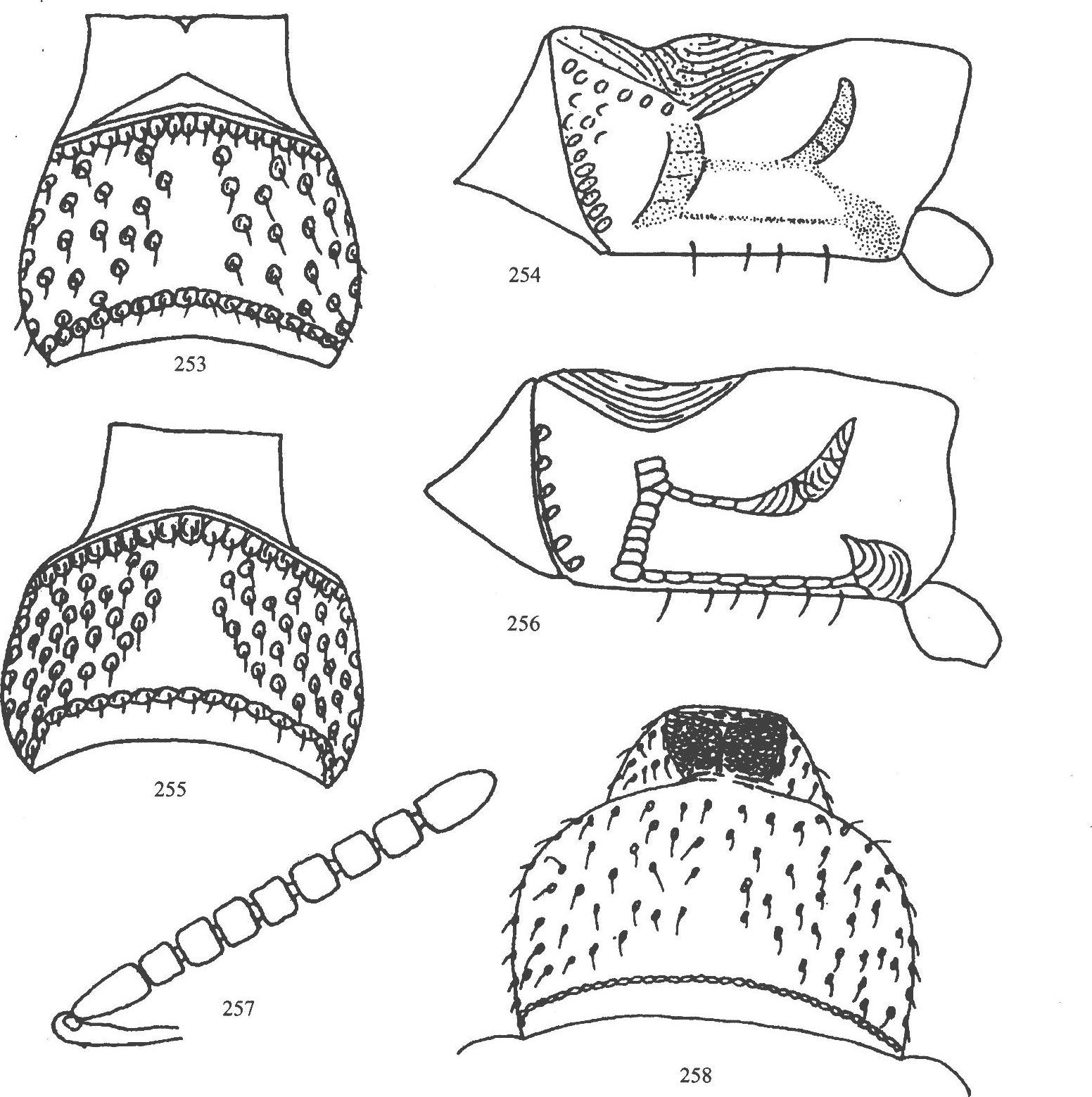 斑,棕色至黑色;颜在触角基部下方凹入颇深,正中具棕至黑色纵条,下部具短纵条,