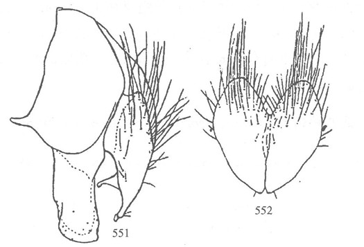 区,额和颜其余部分密被亮黄色平伏毛;后头上部被黄毛,中、下部毛黄白色;触角红褐色,第3节为第1节长的8倍;芒红黄色,约为第3节之半长。中