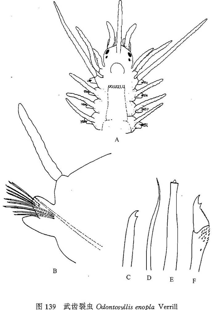 形态特征 体长4.6 mm,体宽(含疣足)0.56 mm,具约39个刚节。