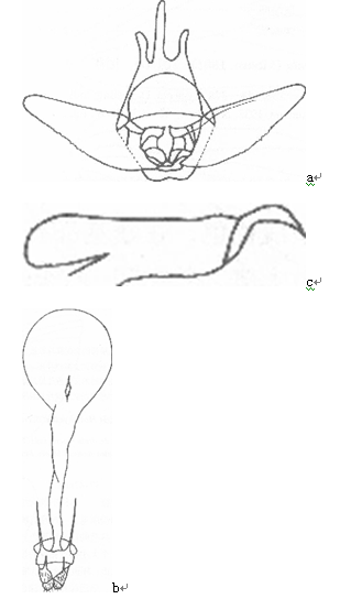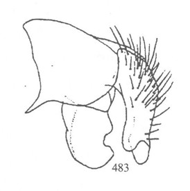 形态 ♂:体长7.4mm。眼疏生短纤毛;额约等于触角第三节宽;侧额大部接触,间额消失;下眶鬃达于单眼三角,无上眶鬃;侧颜约等于或狭于触角第三节宽;触角暗