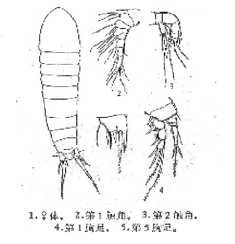 毛细小。第1触角分8节。第2触角分4节,外肢仅一节,具刚毛5根。第1...