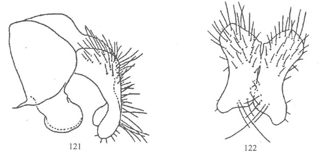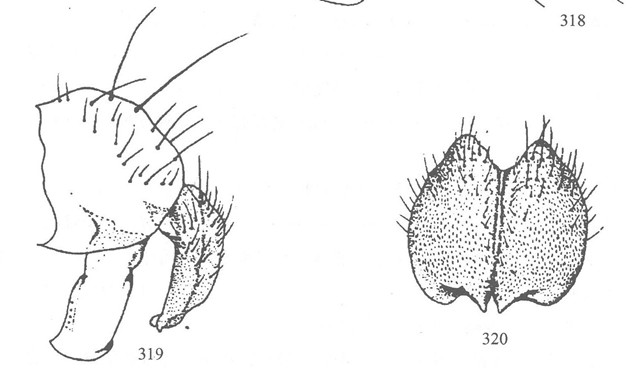 形态 ♂:体长7.0mm。眼稍密生中等长浅色纤毛,毛为前单眼宽的2倍;额等于前单眼宽,间额如线;侧额、侧颜暗棕,具浓白至黄棕粉被;侧颜上部在触角着生处的水平线上有白斑;下眶鬃9—10,上3根细如眼毛;侧颜略宽于触有第三节宽;触角黑,第三节长为宽的2.5倍;触...